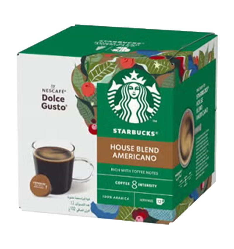Rich with smooth toffee notes, STARBUCKS® House Blend delivers a perfectly balanced cup with full aroma, body, and flavor. Crafted to highlight its signature character, this blend is specially designed for easy preparation with NESCAFÉ® Dolce Gusto® coffee machines.